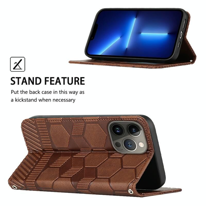 Θήκη Δερμάτινη Μαγνητική Flip με Υφή Ποδοσφαίρου για iPhone 13 Pro Max (Καφέ)