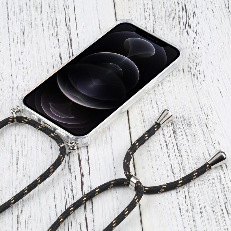 Θήκη προστασίας για iPhone 13 Pro Max, διαφανής από TPU, αντικραδασμική σε τέσσερις γωνίες, με κορδόνι (Κόκκινη)