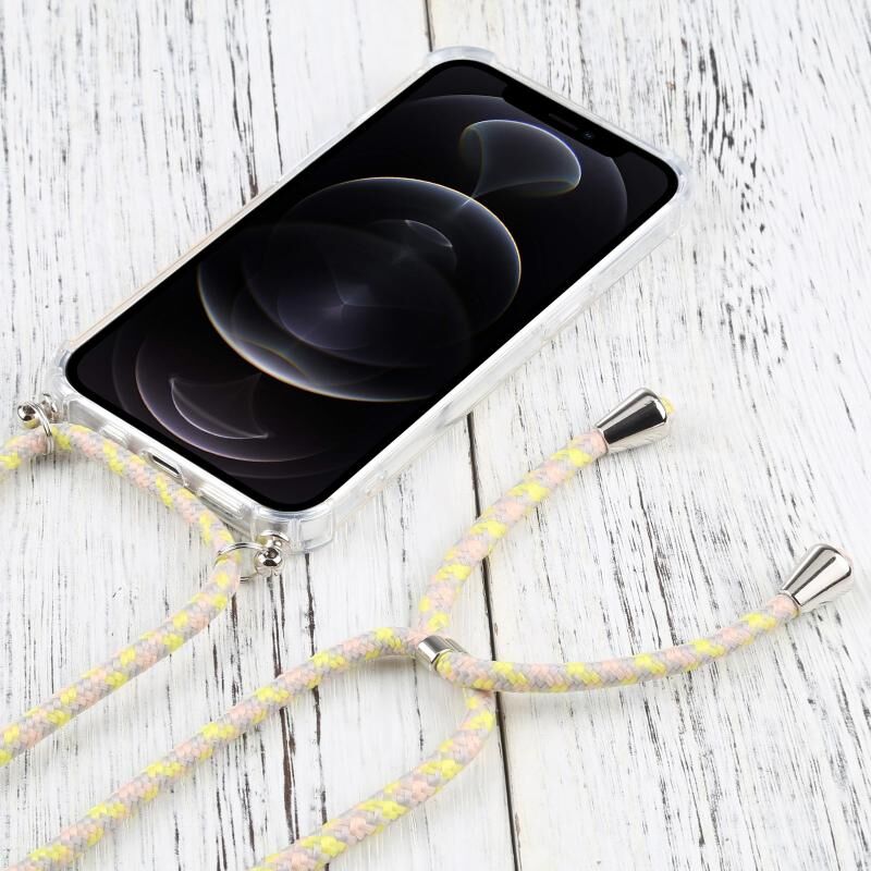 For iPhone 13 Pro Max Four-corner Shockproof Transparent TPU Protective Case with Lanyard (Gold Yellow)