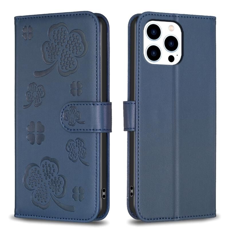 Θήκη τηλεφώνου από ανάγλυφο δέρμα με τετράφυλλο τριφύλλι για iPhone 13 Pro Max (Κόκκινο Ρόδι)