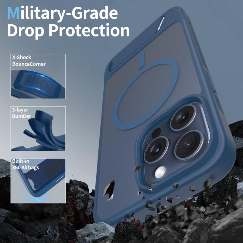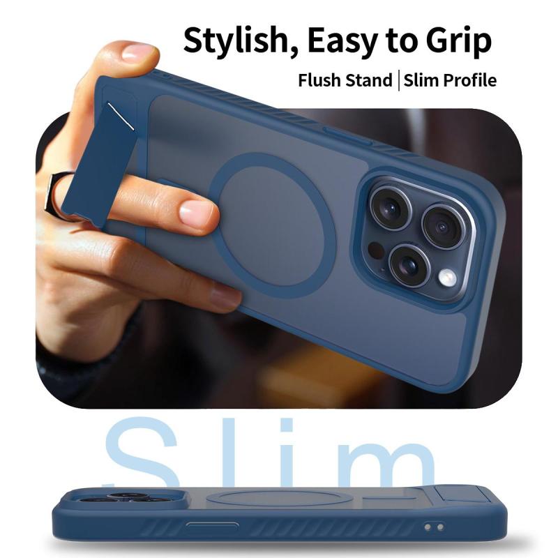 For iPhone 13 Pro Max Frosted Holder PC Hybrid TPU MagSafe Phone Case(Royal Blue)