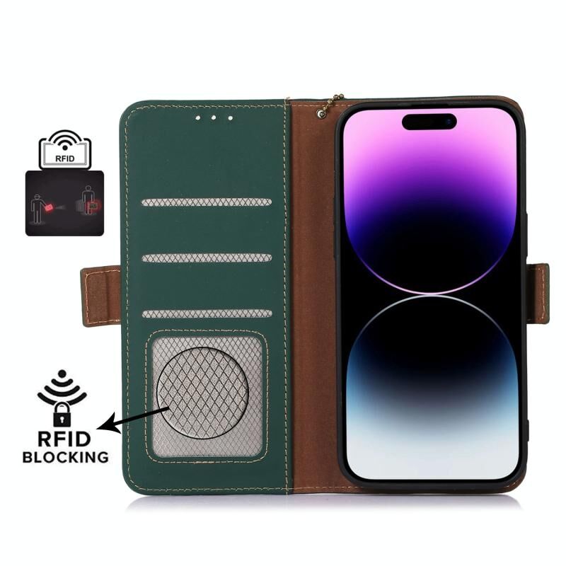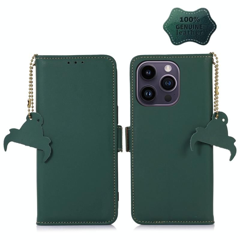 Για iPhone 13 Pro Max Αυθεντική Δερμάτινη Θήκη με Μαγνήτη & RFID (Πράσινο)