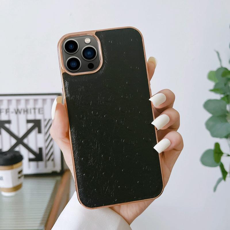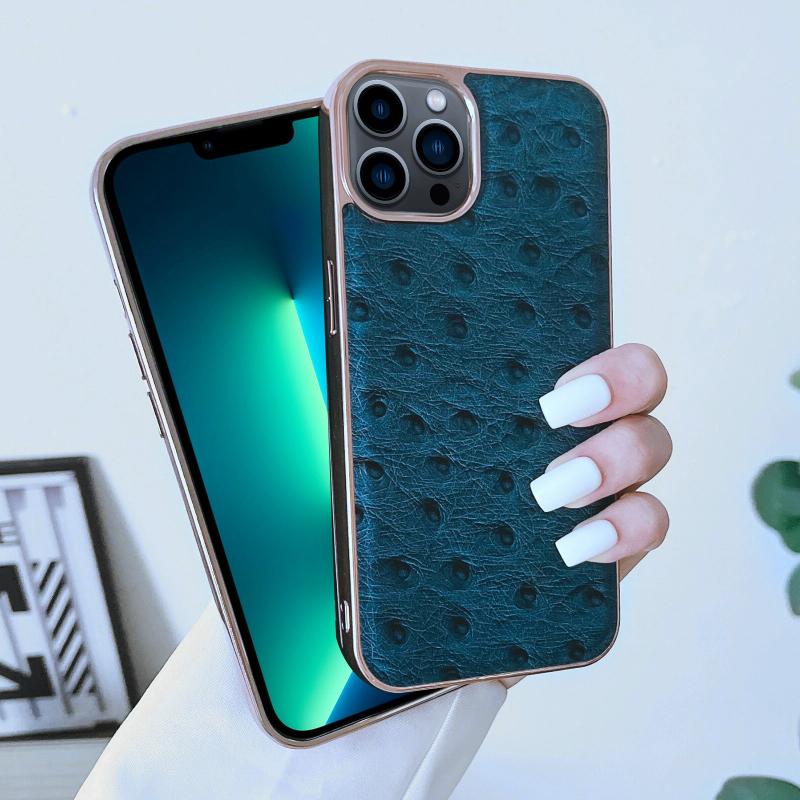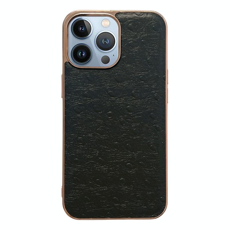 For iPhone 13 Pro Max Genuine Leather Ostrich Texture Nano Case (Black)