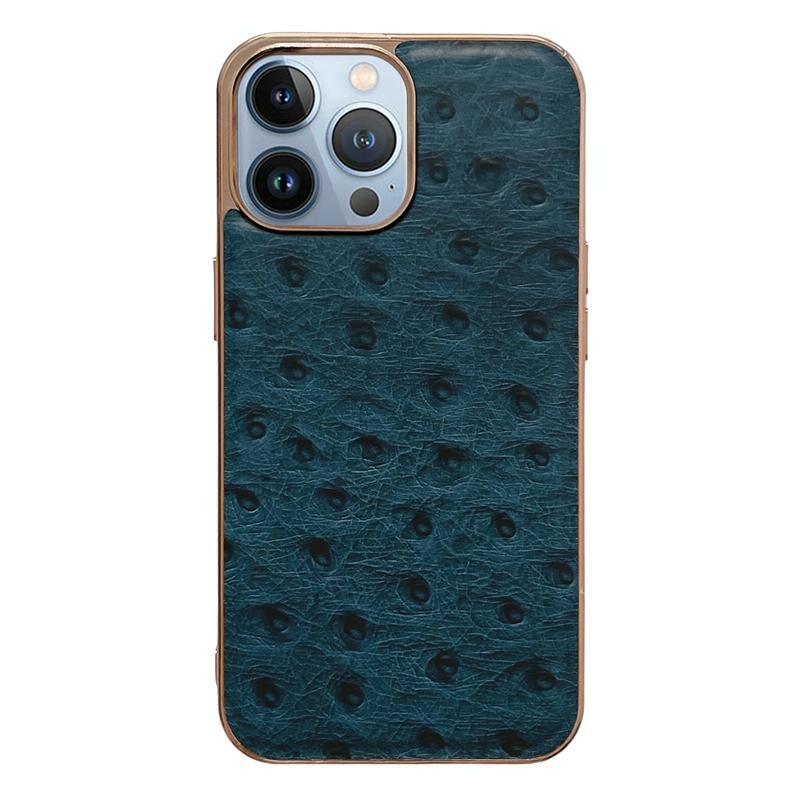 For iPhone 13 Pro Max Genuine Leather Ostrich Texture Nano Case (Blue)