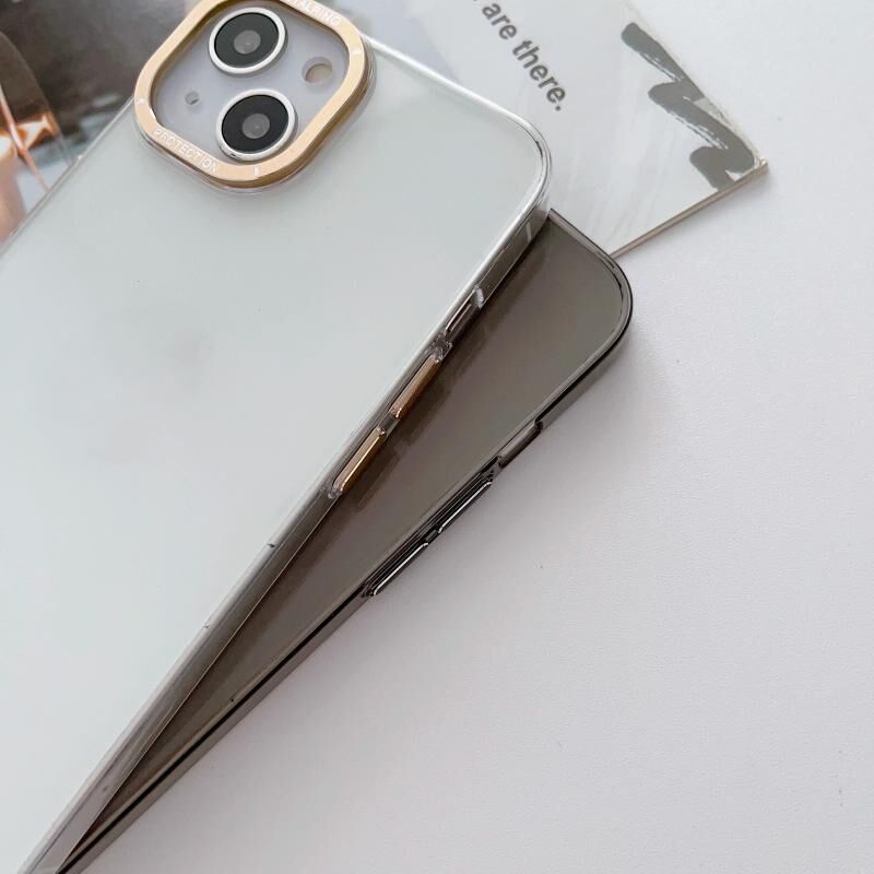 For iPhone 13 Pro Max Glossy Metal Lens Frame PC Phone Case(Transparent)