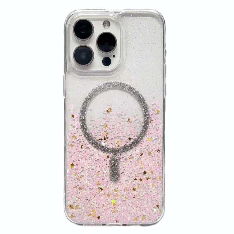 Για iPhone 13 Pro Max Θήκη Υβριδική MagSafe Διαφανής με Γκλίτερ (Ντεγκραντέ Ροζ)
