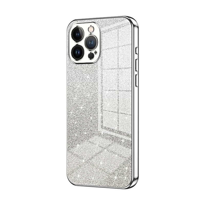 For iPhone 13 Pro Max Gradient Glitter Powder Electroplated Phone Case(Silver)