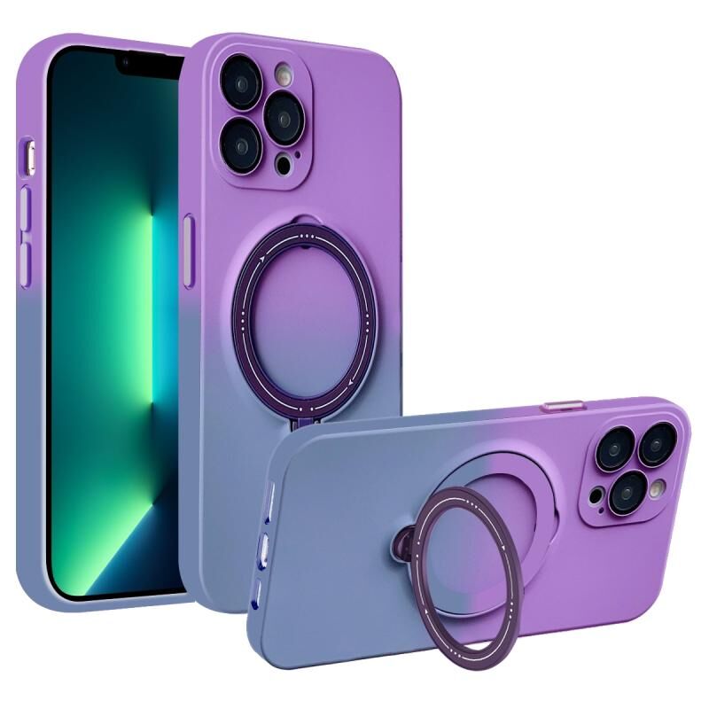 For iPhone 13 Pro Max Gradient TPU MagSafe Holder Phone Case(Deep Purple Gray)
