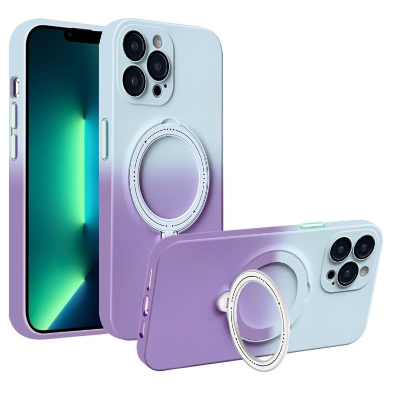 For iPhone 13 Pro Max Gradient TPU MagSafe Holder Phone Case(Gray Purple)