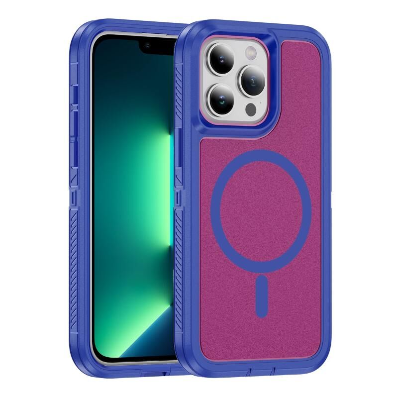 For iPhone 13 Pro Max Guard Magsafe Magnetic Ring Matte Phone Case(Blue+Rose Red)