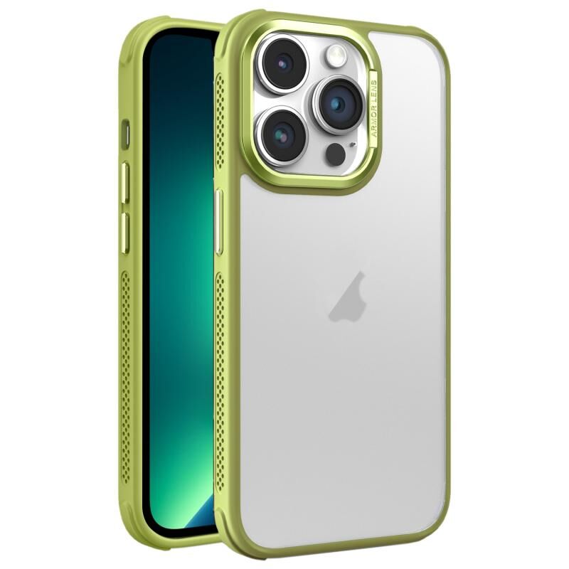For iPhone 13 Pro Max Hardware Side Cooling Skin Feel Frosted Metal Lens Frame Phone Case(Green)