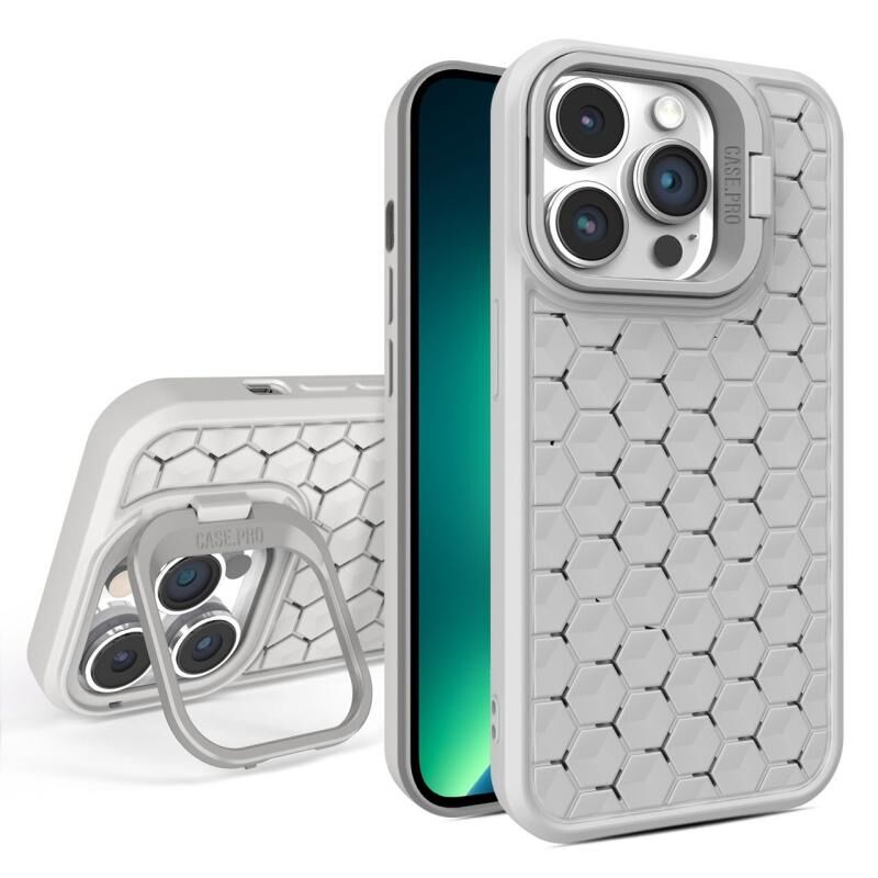For iPhone 13 Pro Max Honeycomb Radiating Lens Holder Magsafe Phone Case(Grey)
