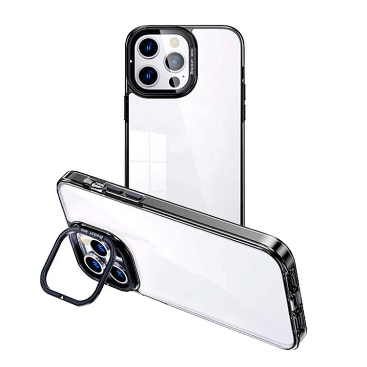 For iPhone 13 Pro Max Invisible Camera Holder Transparent Phone Case(Black)