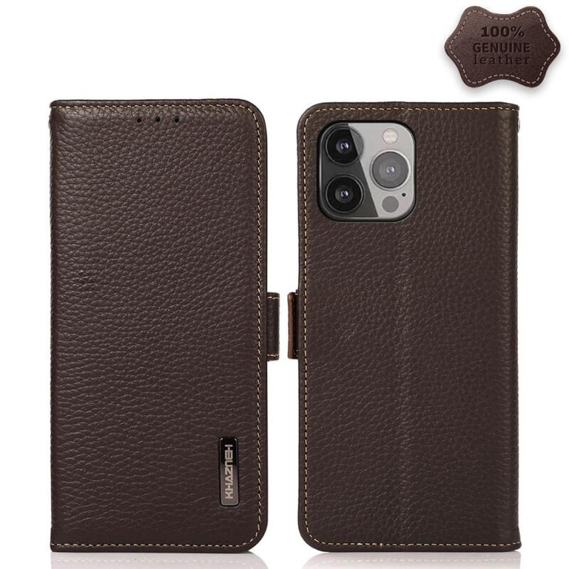 Θήκη KHAZNEH για iPhone 13 Pro Max με πλευρική μαγνητική σύνδεση, από γνήσιο δέρμα Litchi με προστασία RFID (Μαύρο)