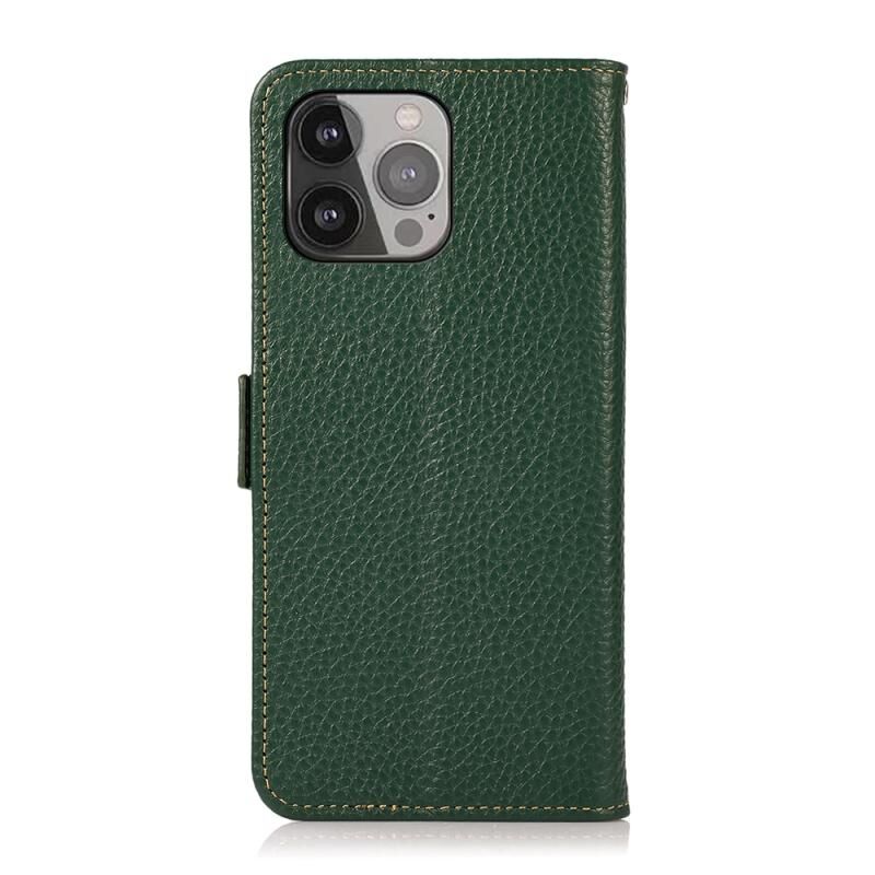 Θήκη KHAZNEH για iPhone 13 Pro Max με πλευρική μαγνητική σύνδεση, από γνήσιο δέρμα Litchi με προστασία RFID (Μαύρο)