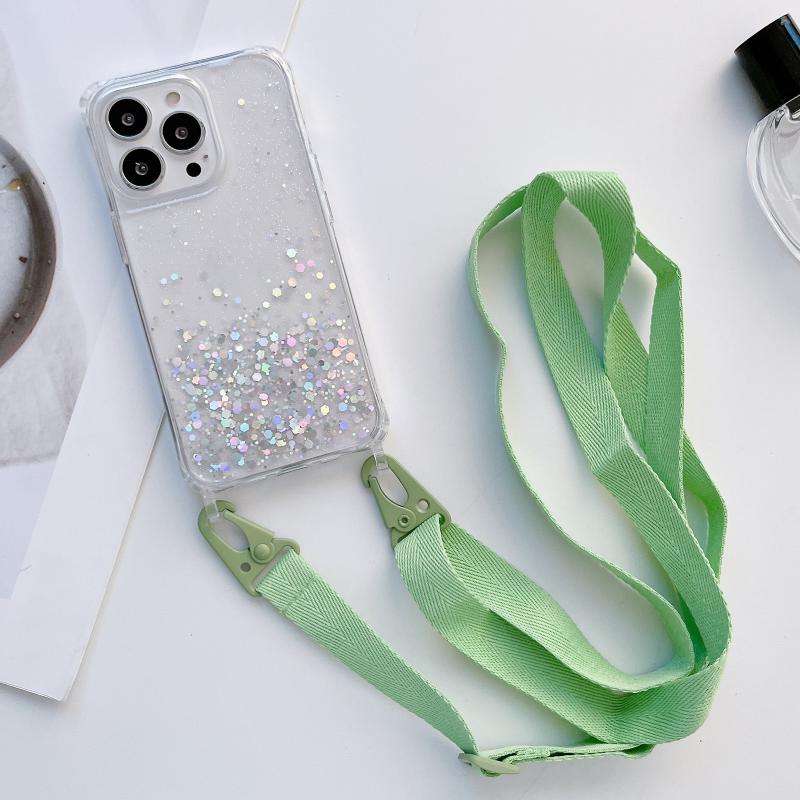 Θήκη κινητού iPhone 13 Pro Max με κορδόνι, glitter, διάφανη epoxy (Πράσινο)