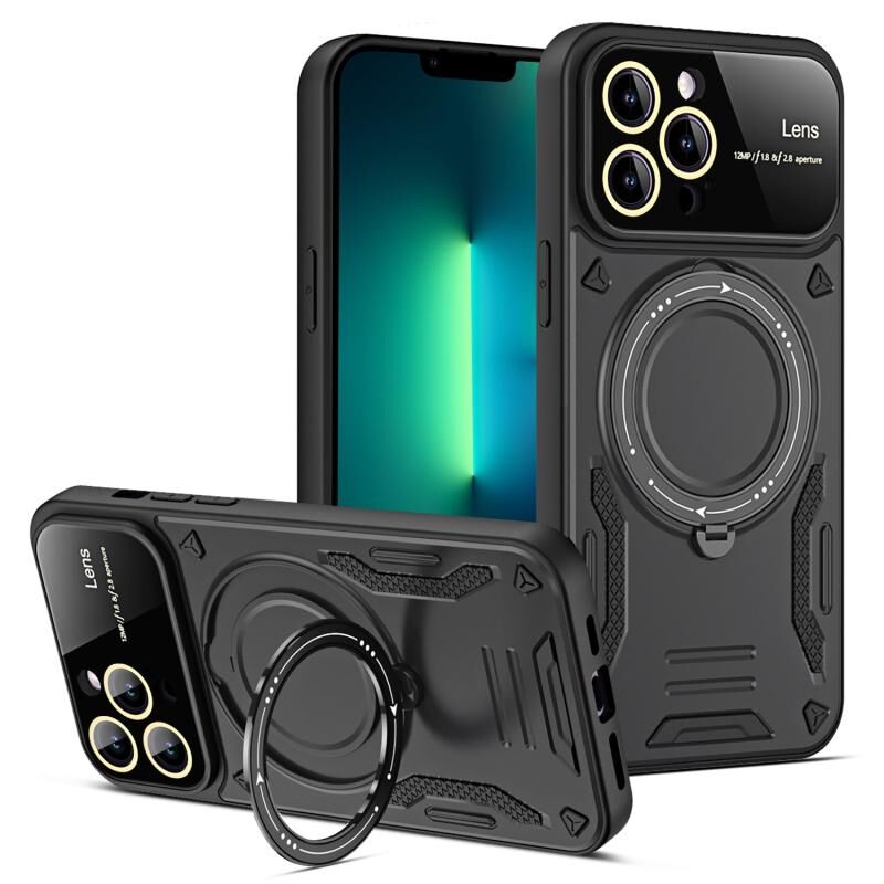 For iPhone 13 Pro Max Large Window MagSafe Holder Phone Case(Black)