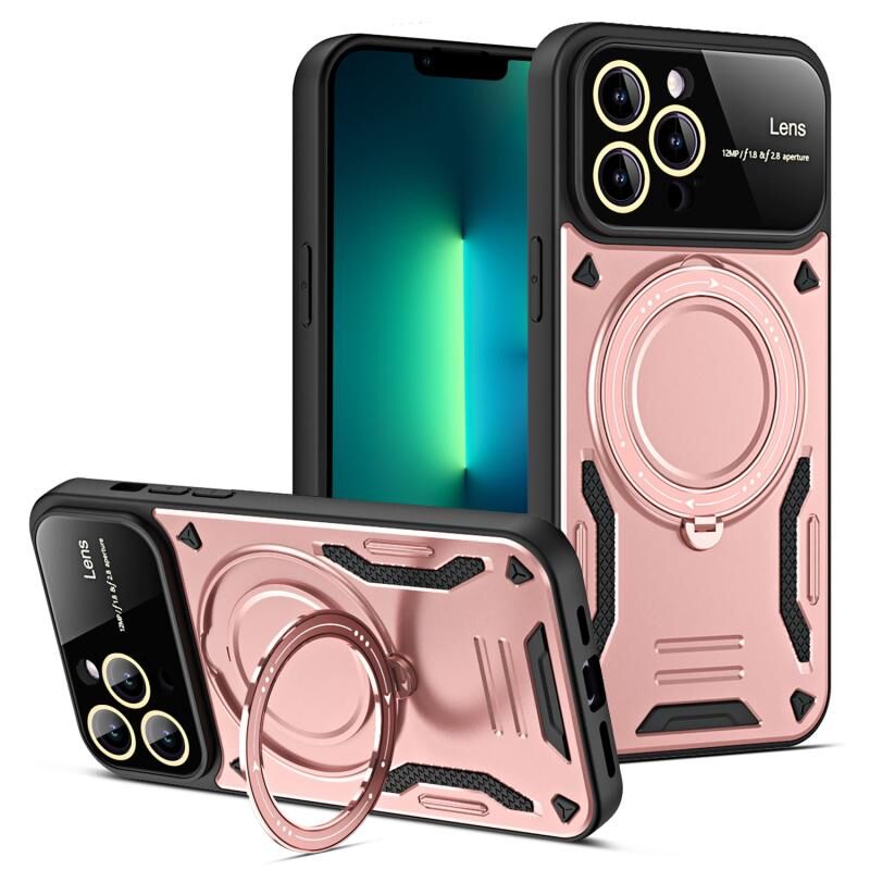 For iPhone 13 Pro Max Large Window MagSafe Holder Phone Case(Rose Gold)