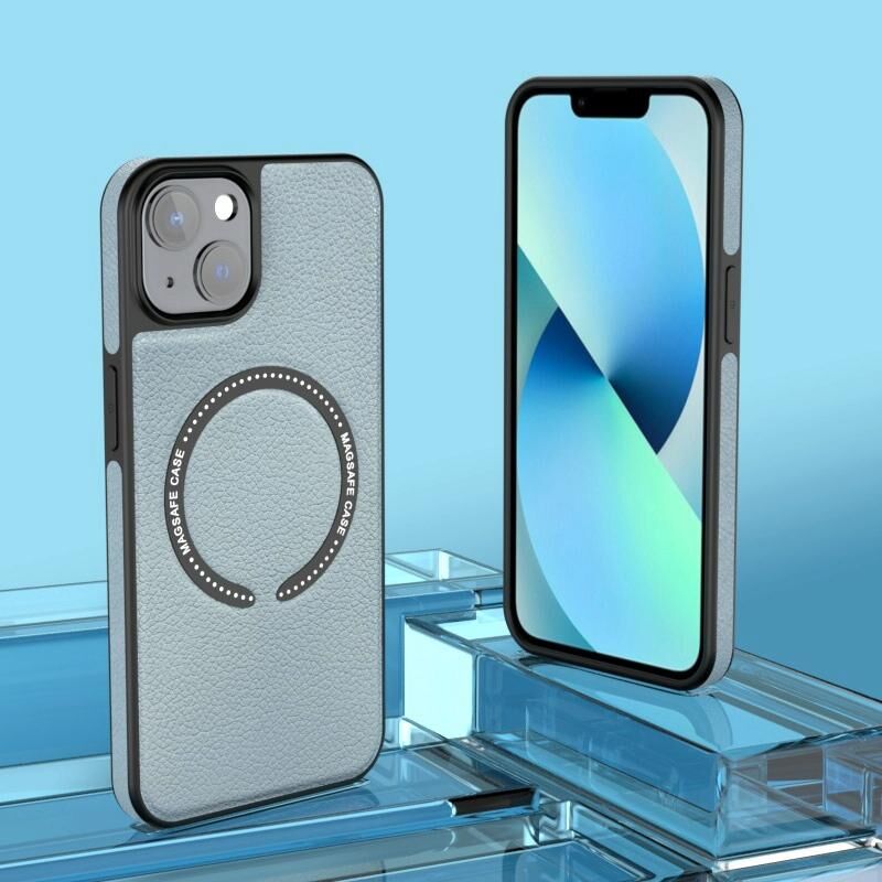 For iPhone 13 Pro Max Leather MagSafe Magnetic Phone Case(Blue Grey White)