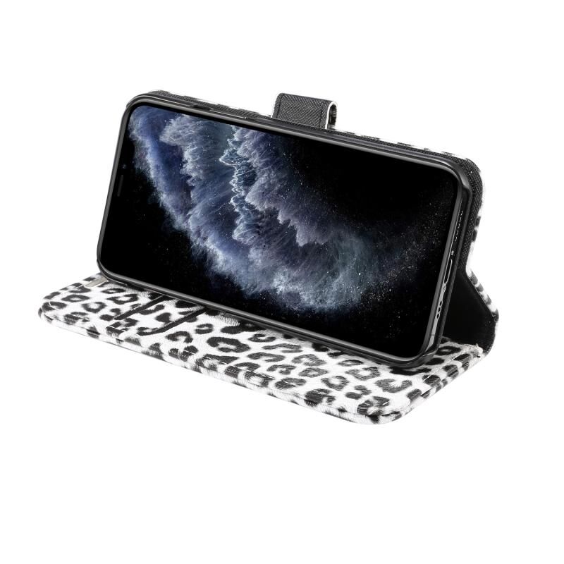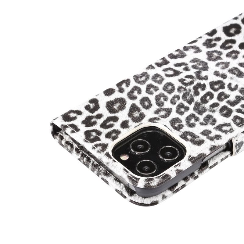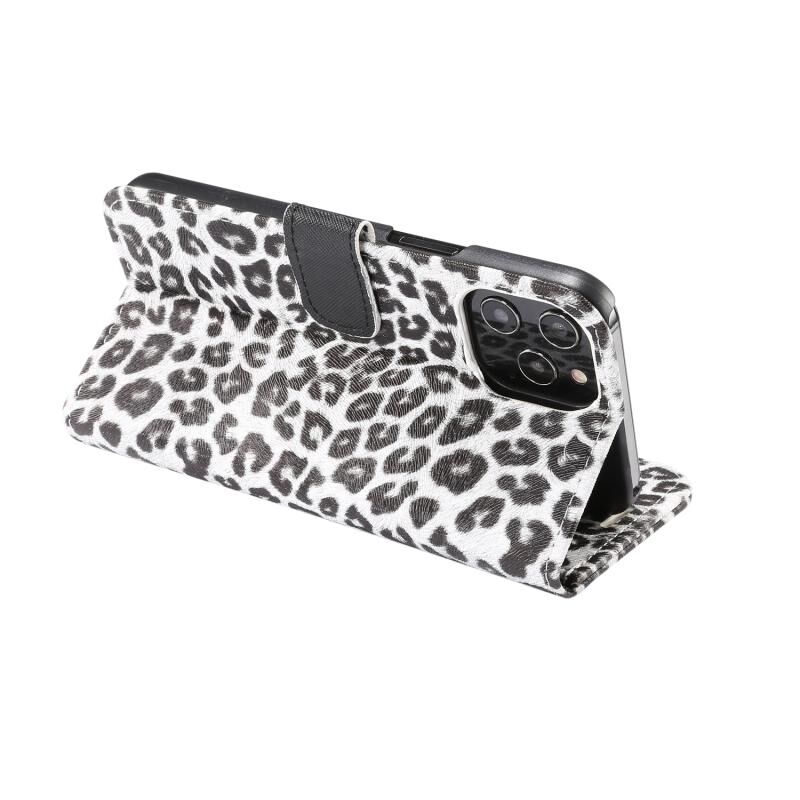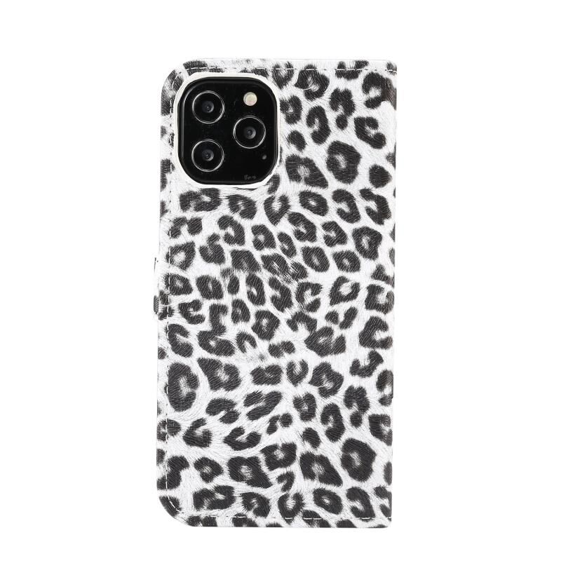 For iPhone 13 Pro Max Leopard Pattern Horizontal Flip PC + PU Leather Case with Holder & Card Slots & Wallet (White)