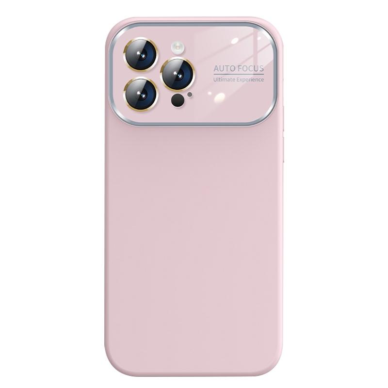 For iPhone 13 Pro Max Liquid Silicone Large Glass Window Phone Case(Pink)