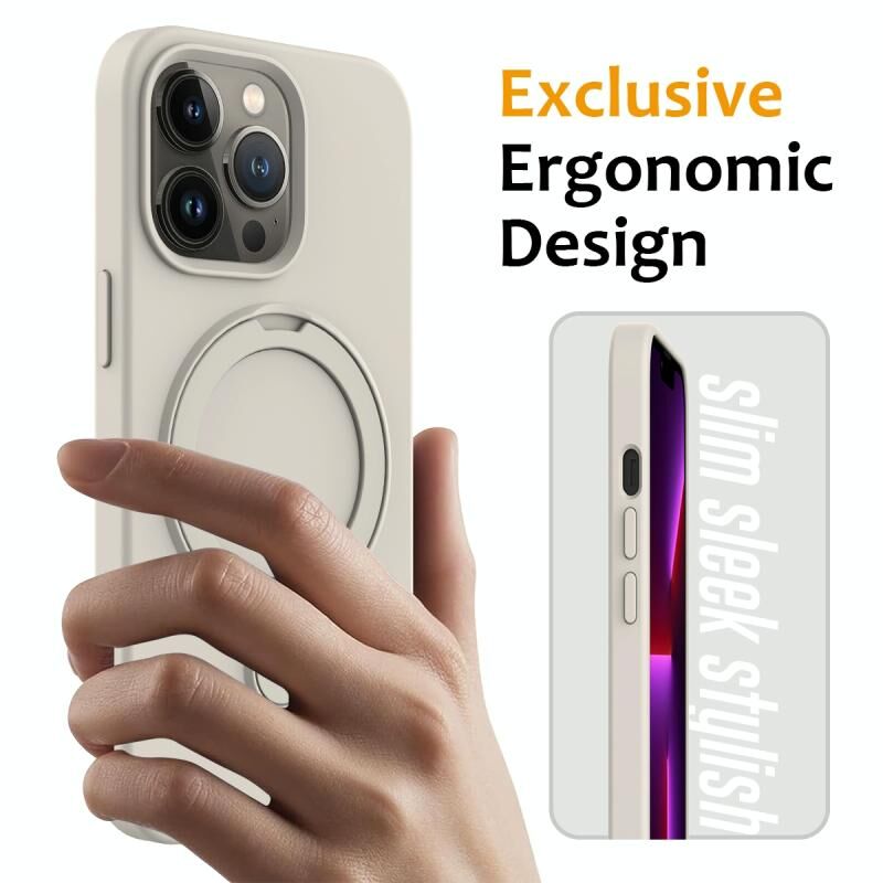 Θήκη τηλεφώνου για iPhone 13 Pro Max από υγρή σιλικόνη με μαγνητική σύνδεση MagSafe και δακτύλιο στήριξης (Λευκό)