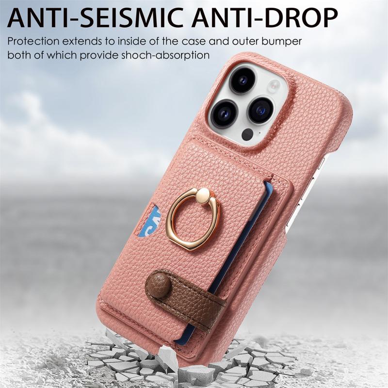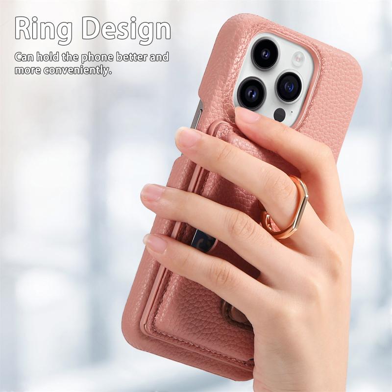For iPhone 13 Pro Max Litchi Leather Oil Edge Ring Card Back Phone Case(Pink)