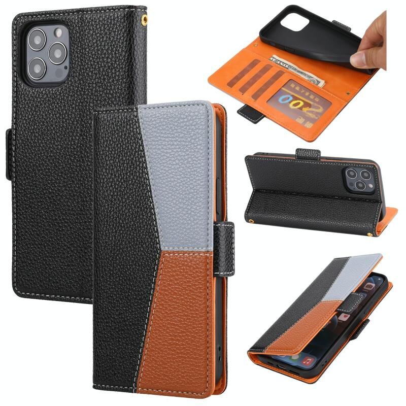 For iPhone 13 Pro Max Litchi Texture Color Matching Horizontal Flip Leather Case with Card Slots & Holder & Wallet & Photo Frame (Black)