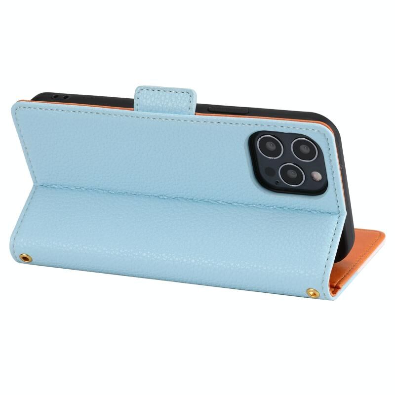 For iPhone 13 Pro Max Litchi Texture Color Matching Horizontal Flip Leather Case with Card Slots & Holder & Wallet & Photo Frame (Blue)