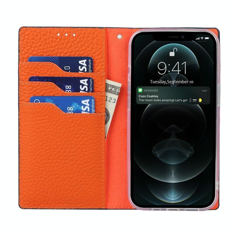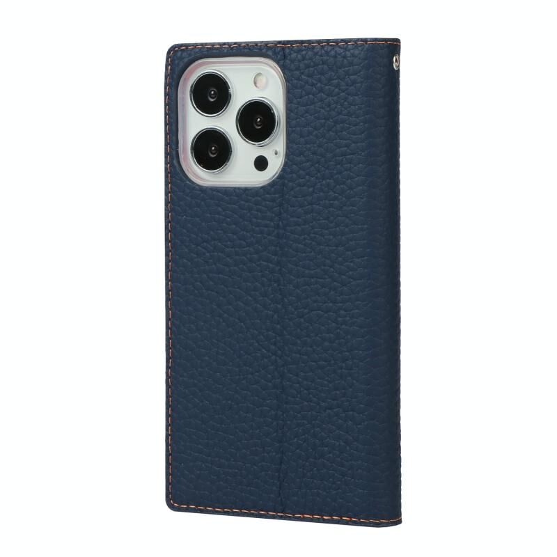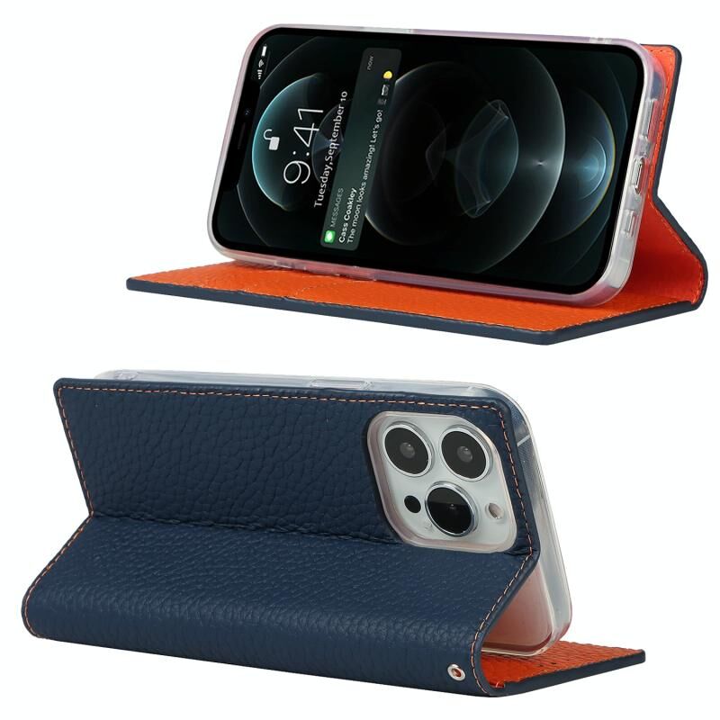 For iPhone 13 Pro Max Litchi Texture Genuine Leather Phone Case With Lanyard & Holder & Card Slots & Wallet (Dark Blue)