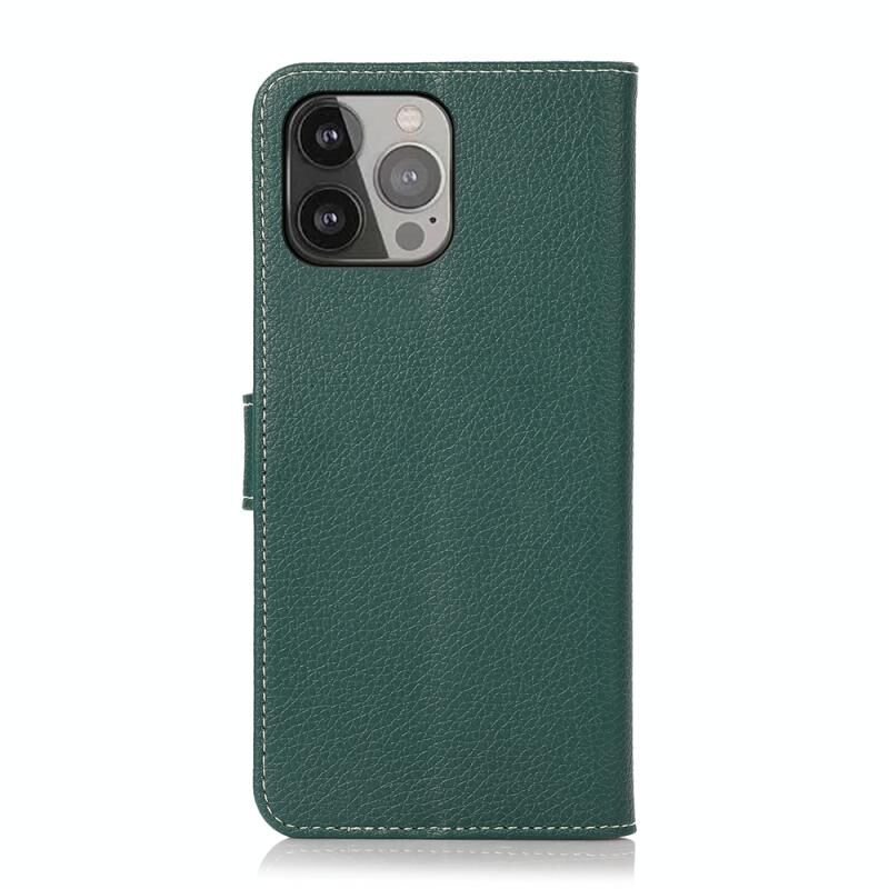 For iPhone 13 Pro Max Litchi Texture PU + TPU Horizontal Flip Leather Case with Holder & Card Slots & Wallet (Dark Green)