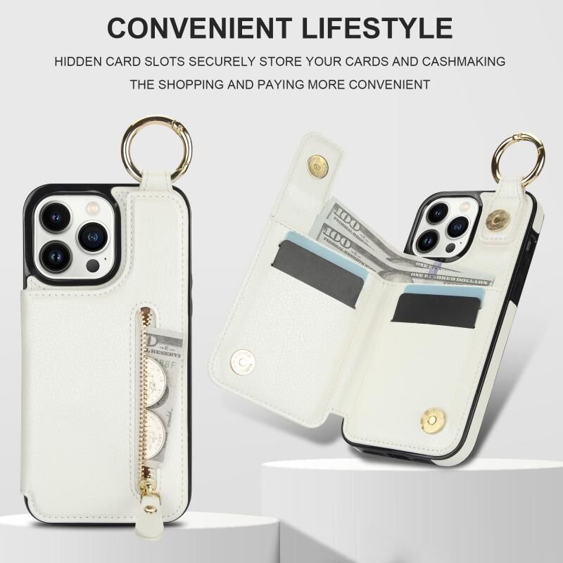 Για iPhone 13 Pro Max Litchi υφή φερμουάρ διπλή πόρπη κάρτα τσάντα υπόθεση τηλεφώνου (λευκό)