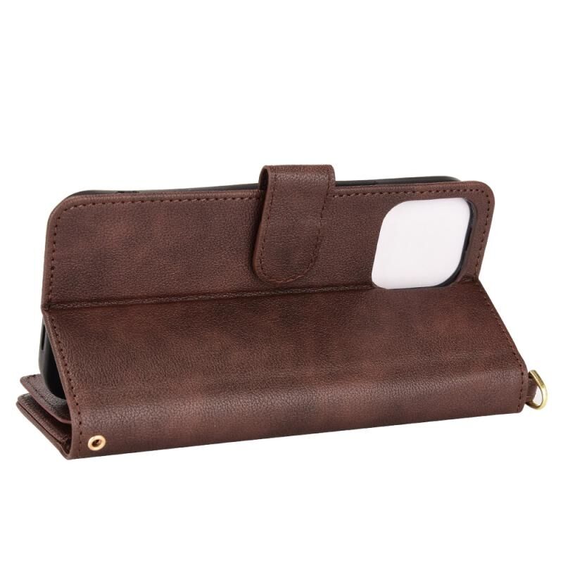 Θήκη τηλεφώνου από δέρμα με υφή Litchi και φερμουάρ για iPhone 13 Pro Max (Πράσινο)