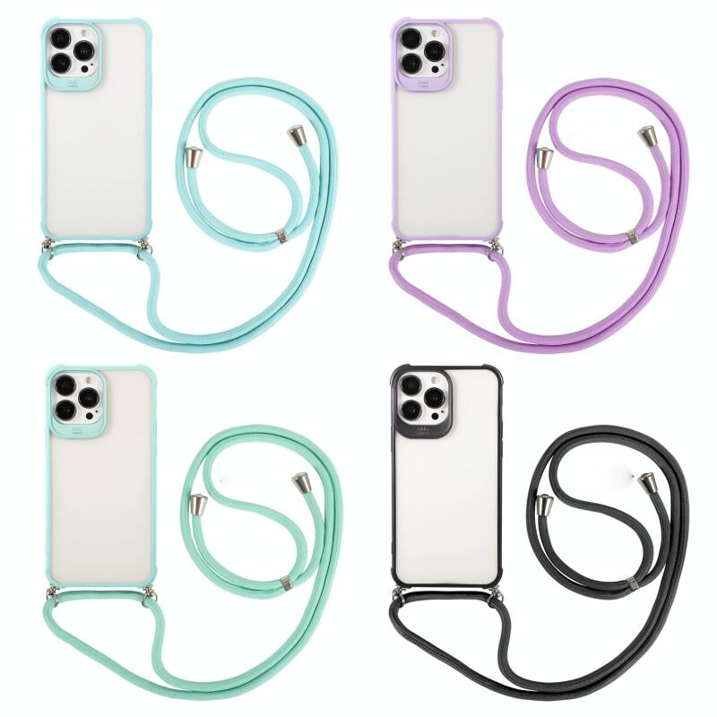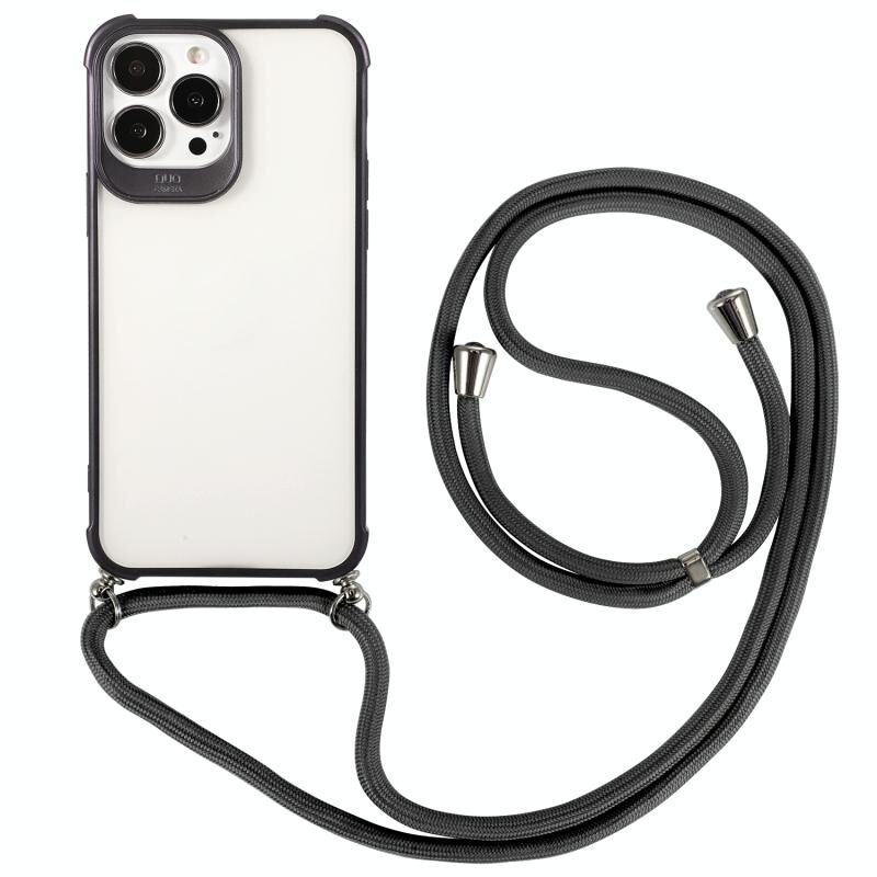 For iPhone 13 Pro Max Macaron Color Phone Case with Lanyard (Black)