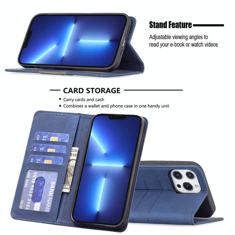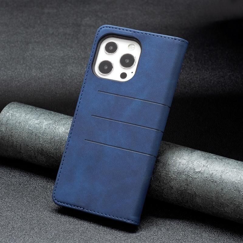 For iPhone 13 Pro Max Magnetic Splicing Leather Phone Case (Blue)