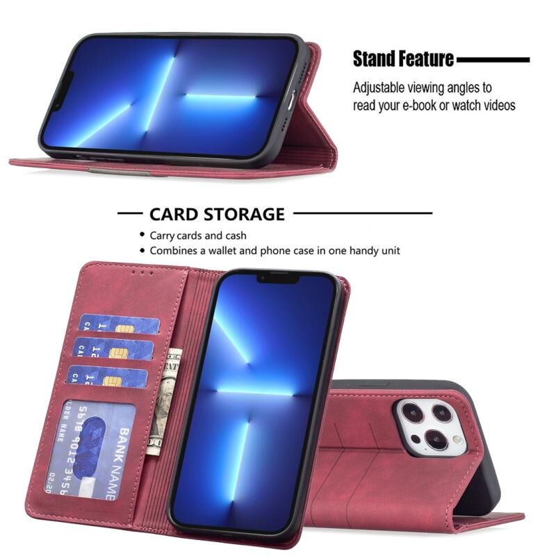 For iPhone 13 Pro Max Magnetic Splicing Leather Phone Case (Red)