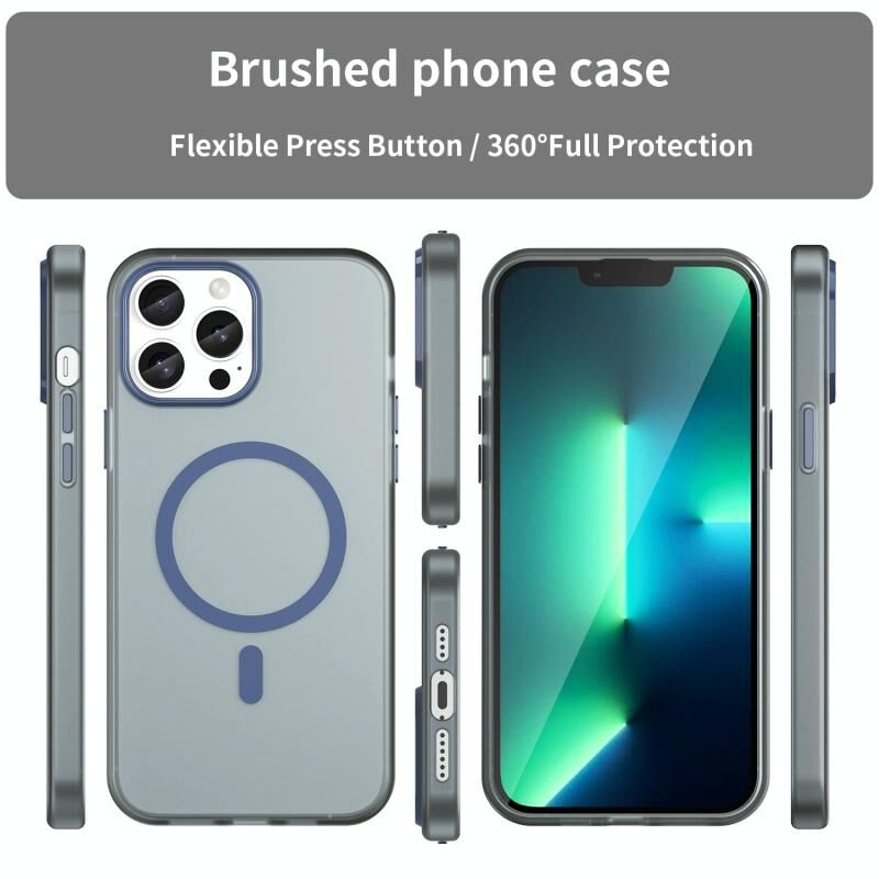 For iPhone 13 Pro Max MagSafe Frosted Translucent TPU + PC Full Coverage Phone Case(Dark Blue)