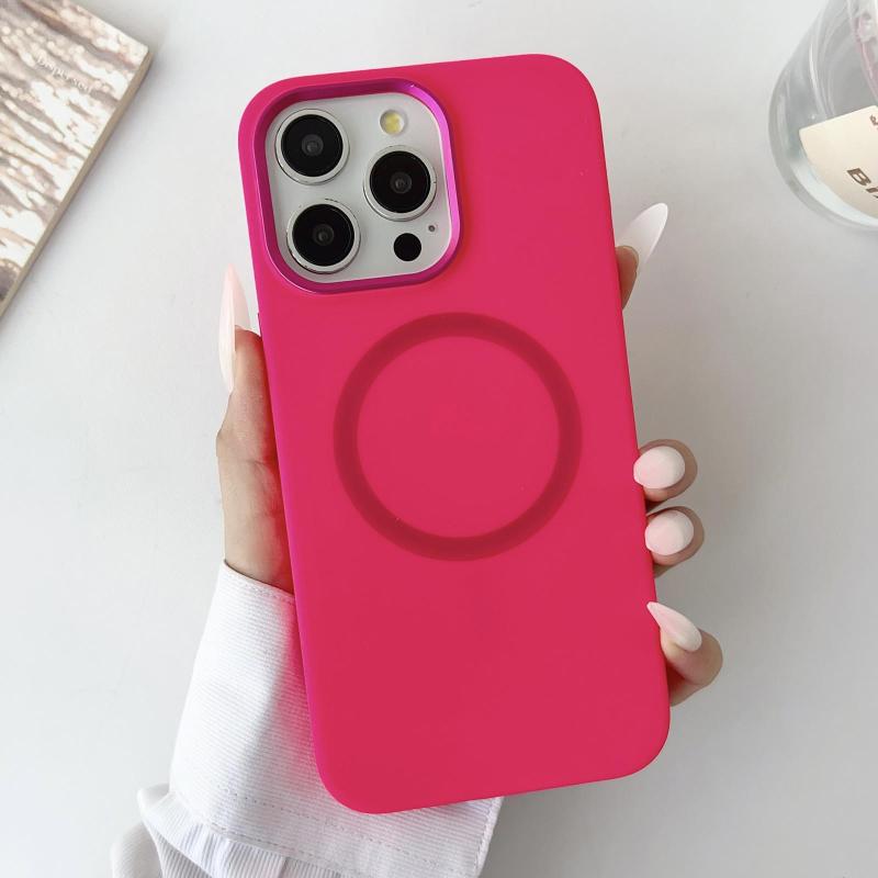For iPhone 13 Pro Max Metal Frame Liquid Silicone MagSafe Phone Case(Rose Red)