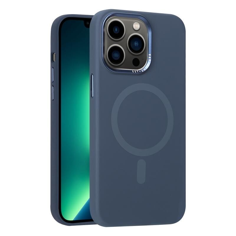 For iPhone 13 Pro Max Metal Lens Frame Liquid Silicone MagSafe Phone Case(Midnight Blue)