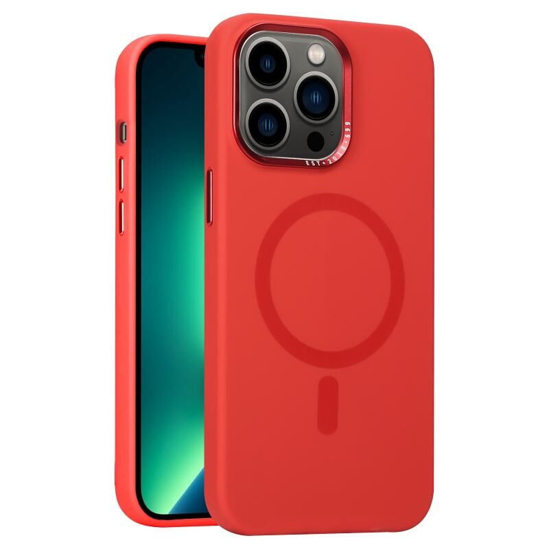 For iPhone 13 Pro Max Metal Lens Frame Liquid Silicone MagSafe Phone Case(Red)