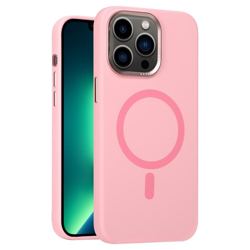 For iPhone 13 Pro Max Metal Lens Frame Liquid Silicone MagSafe Phone Case(Rose Pink)