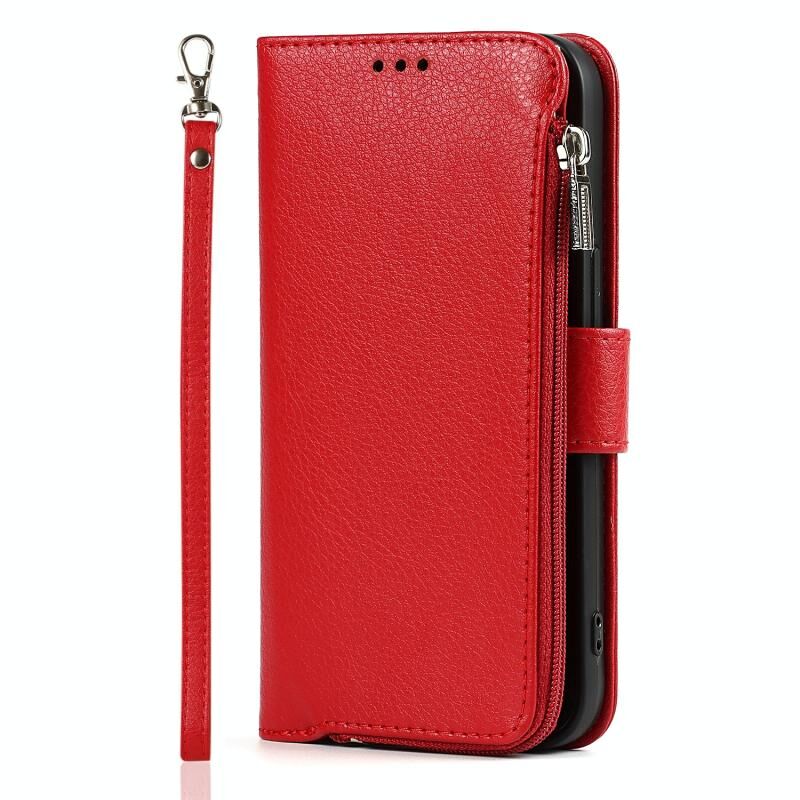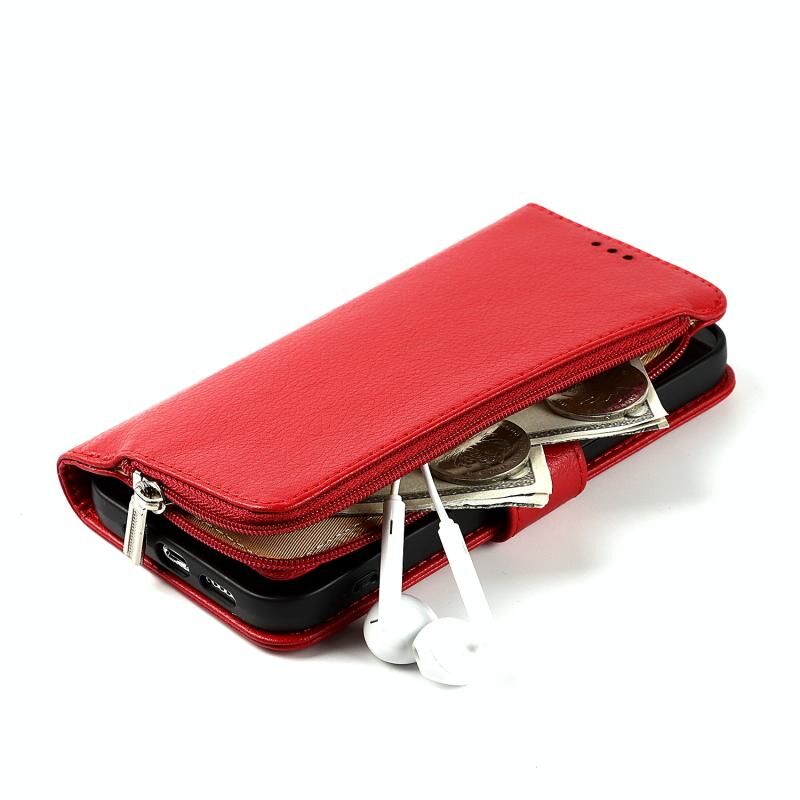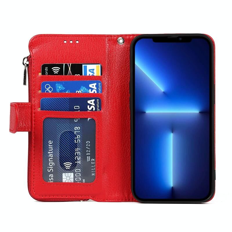 For iPhone 13 Pro Max Microfiber Zipper Horizontal Flip Leather Case with Holder & Card Slots & Wallet (Red)