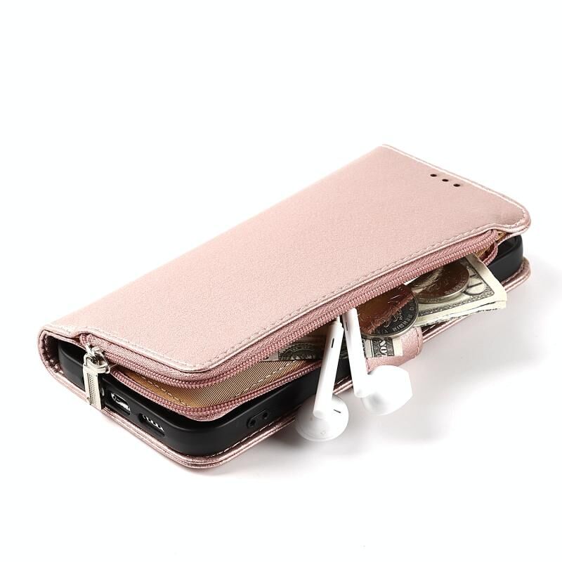 For iPhone 13 Pro Max Microfiber Zipper Horizontal Flip Leather Case with Holder & Card Slots & Wallet (Rose Gold)
