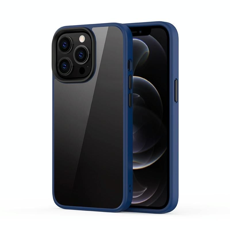 For iPhone 13 Pro Max Ming Shield Hybrid Frosted Transparent PC + TPU Scratchproof Shockproof Case (Blue)