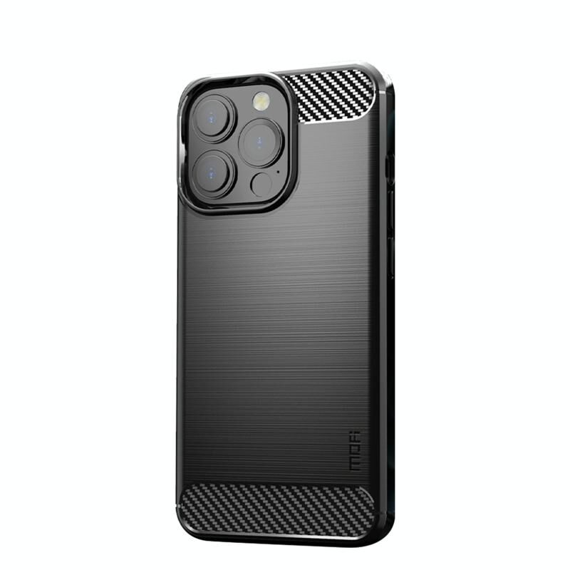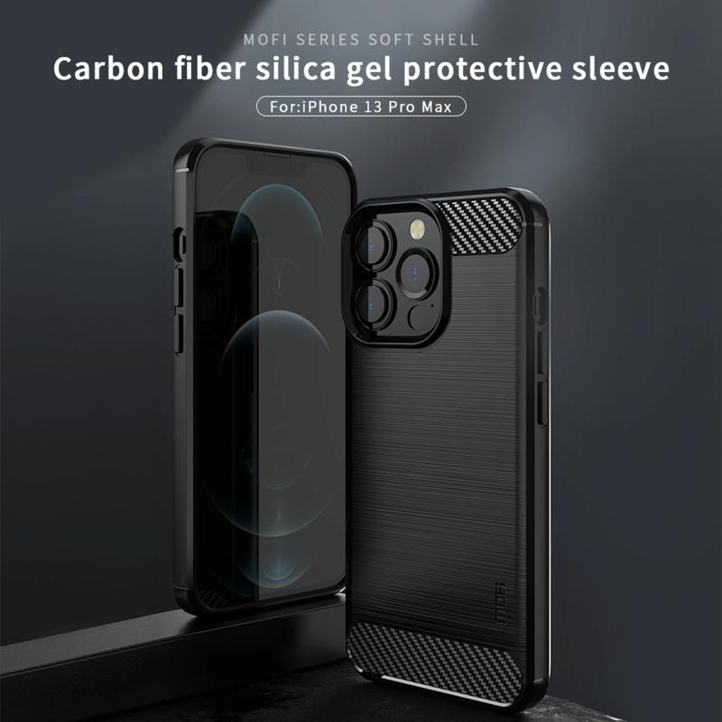 For iPhone 13 Pro Max MOFI Gentleness Series Brushed Texture Carbon Fiber Soft TPU Case (Black) (MOFI)