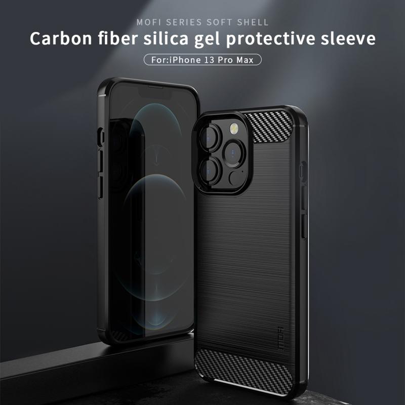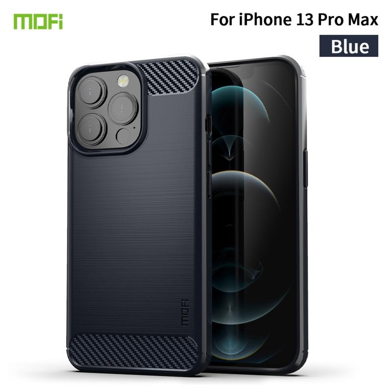 For iPhone 13 Pro Max MOFI Gentleness Series Brushed Texture Carbon Fiber Soft TPU Case (Blue) (MOFI)