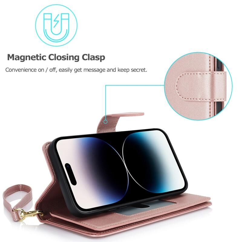 For iPhone 13 Pro Max Multi-Card Wallet RFID Leather Phone Case(Rose Gold)
