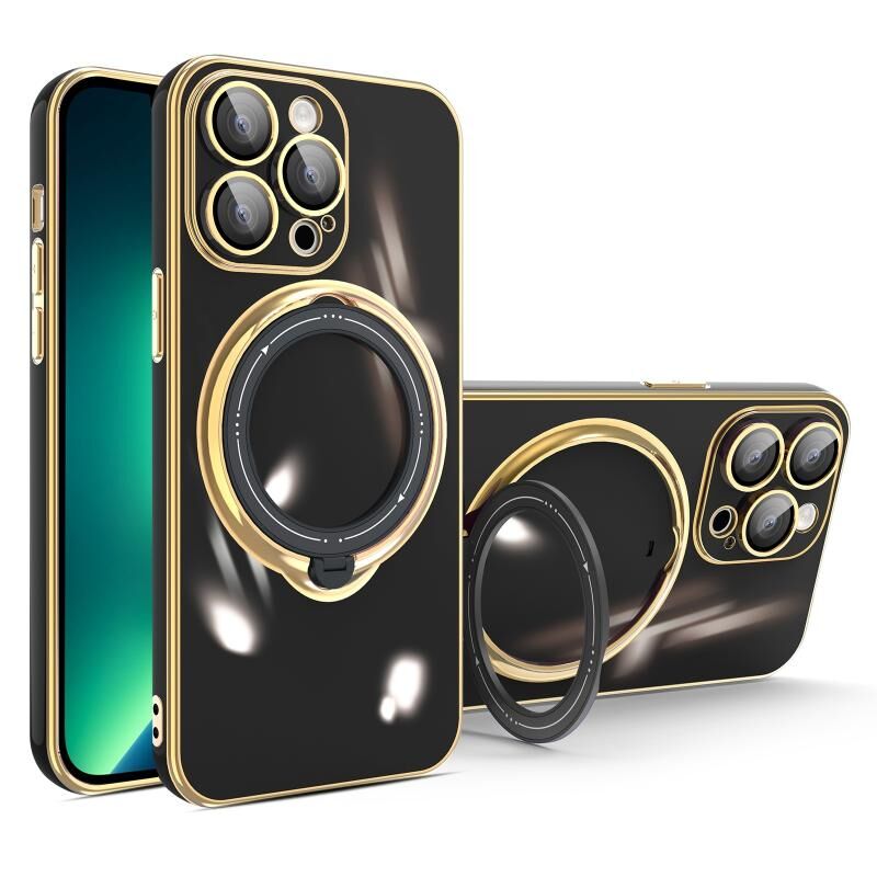 For iPhone 13 Pro Max Multifunction Electroplating MagSafe Holder Phone Case(Black)