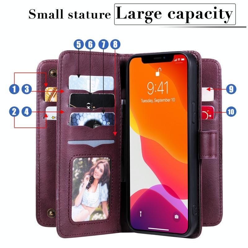 For iPhone 13 Pro Max Multifunctional Magnetic Copper Buckle Horizontal Flip Solid Color Leather Case with 10 Card Slots & Wallet & Holder & Photo Frame (Dark Green)