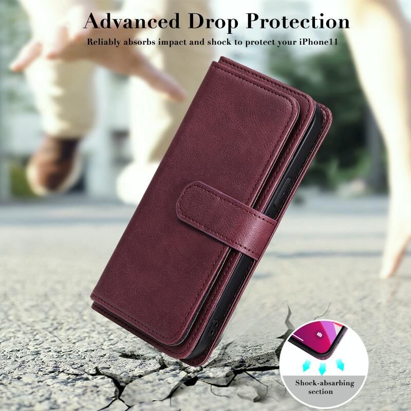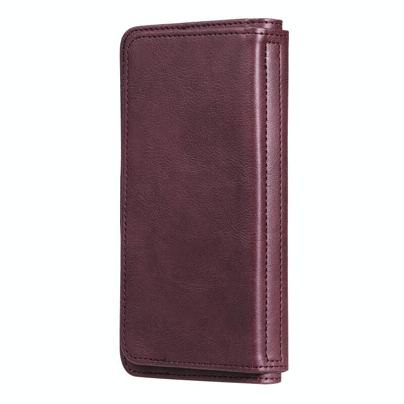 For iPhone 13 Pro Max Multifunctional Magnetic Copper Buckle Horizontal Flip Solid Color Leather Case with 10 Card Slots & Wallet & Holder & Photo Frame (Wine Red)